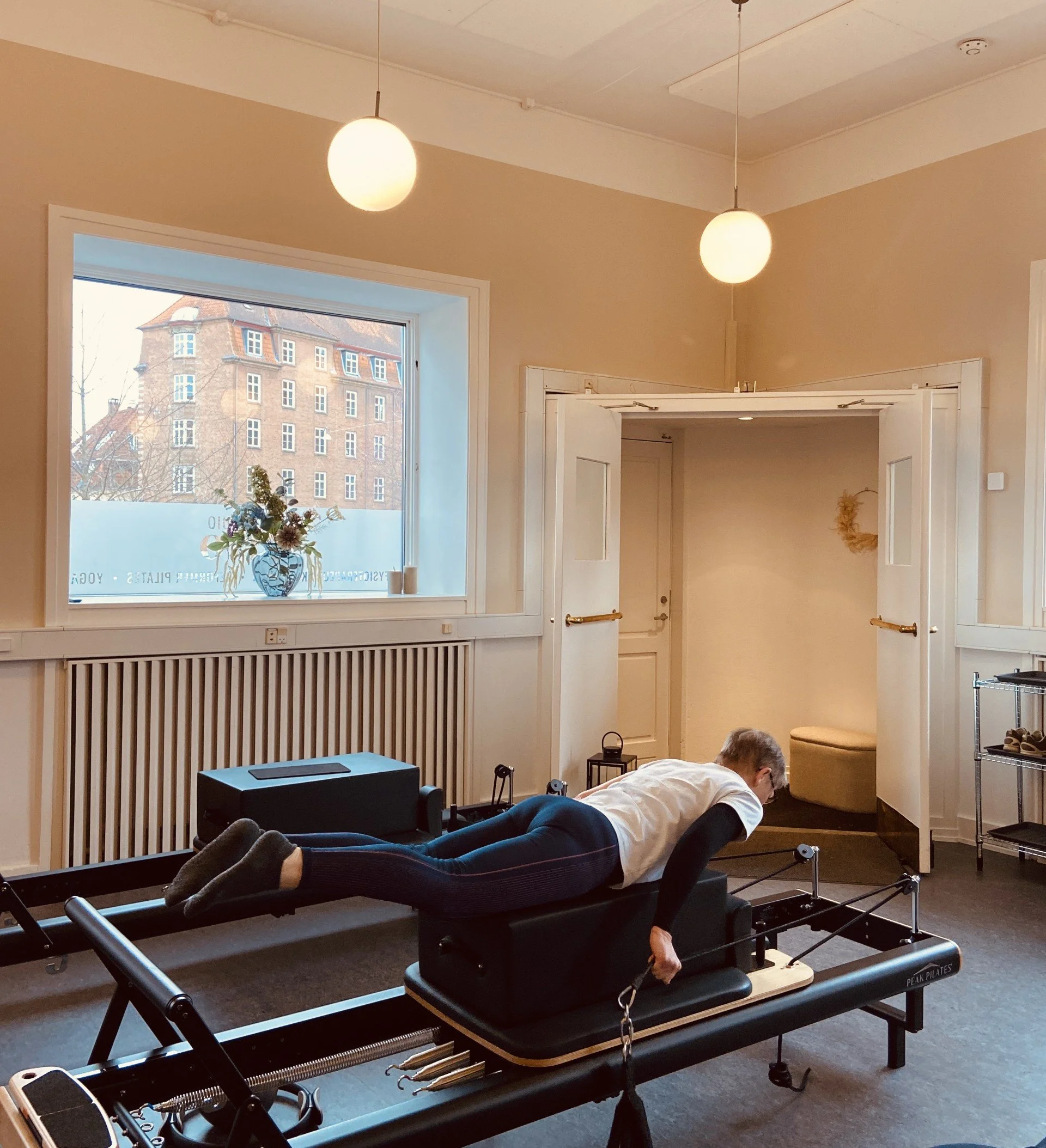Vi træner på reformer-maskinen, hvor modstanden kan tilpasses individuelt. Det gør det muligt at arbejde skånsomt og kontrolleret med ryggen, samtidig med at musklerne styrkes og kroppen bliver mere stabil. Øvelserne har fokus på core, kropsholdning og bevægekvalitet, som er vigtige elementer i arbejdet med rygproblemer.